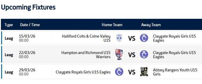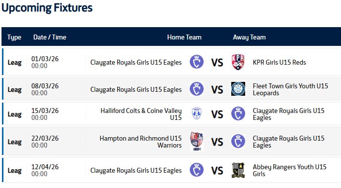 Current loaded fixtures. PLEASE NOTE THESE CAN CHANGE AT SHORT NOTICE FROM THE LEAGUE AND “FREE” WEEKENDS MAY GET A FIXTURE ALLOCATED ON THE WEEK OF THE MATCH.